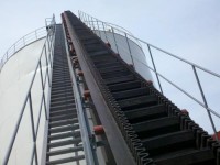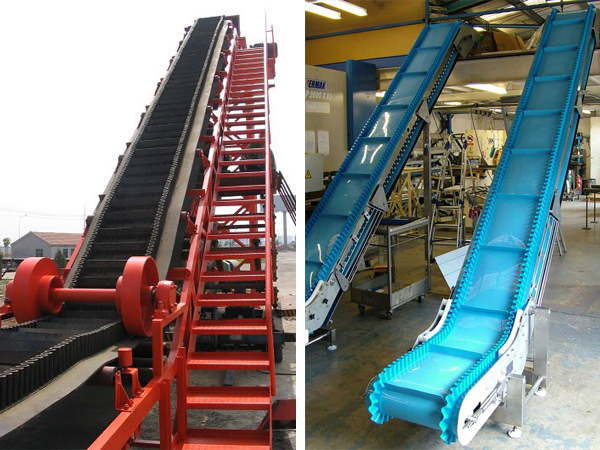 大傾角膠帶輸送機為一般用途的散狀物料連續(xù)輸送設(shè)備,大傾角輸送機采用的是具有波狀擋邊隔板的輸送帶(裙邊輸送帶,裙邊隔板輸送帶)。因此特別適用于大傾角輸送。